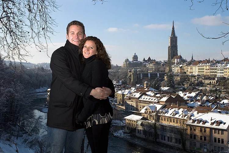 Taking portraits is always a great opportunity and I enjoyed taking photos of Manuel and his wife Karolina this past weekend. The session was for charity; it was placed on eBay to support the Theodora Clowns through my day job, so the money which Manuel paid for the two hour session has gone to a good cause. This is my favourite shot from the day on the hill overlooking the old city of Bern. It’s been mentioned that this looks a little as if it was set up and composed from multiple images in Photoshop: but it wasn’t! The semi-studio effect was taken using a single strobe with large white umbrella positioned out of shot to the left. Photos from the session are now online at Flickr, some of which are only visible to those with my “friends and family” settings.