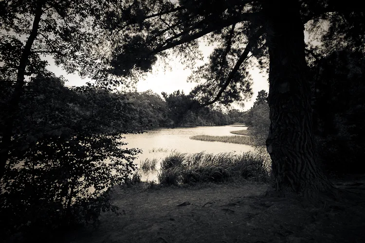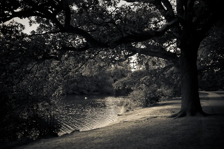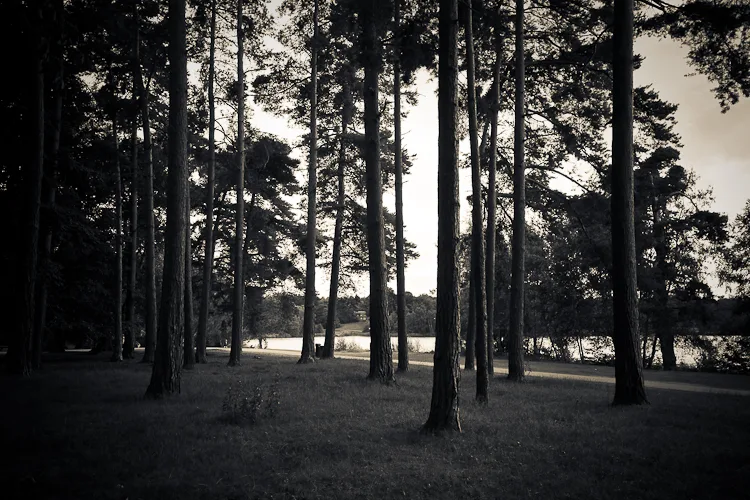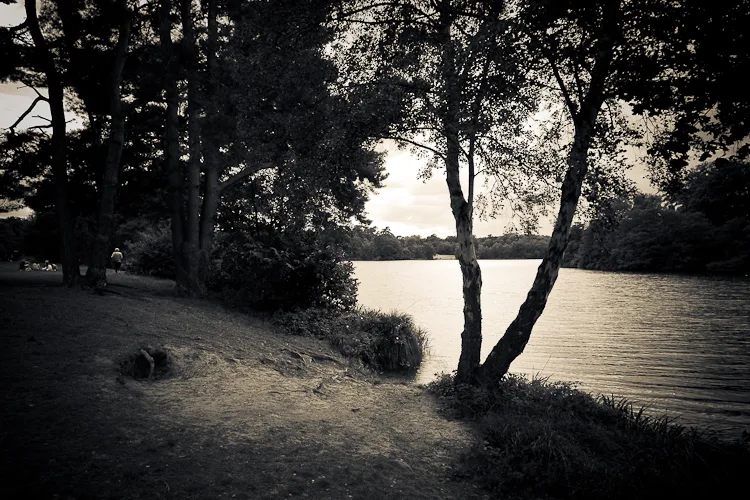 Virginia Water is a lake in a thousand acre forest to the west of London, which was created when a stream of the same name was dammed in the middle of the 18th century. Until the great reservoirs were created, it was the largest body of water in the British Isles. I have visited the lake on several occasions to take photos and walk along the lake shore; when I visited last weekend with my family, for the first time in many years, I was struck by the silvery quality of the light amongst the trees and so I took this series of shots.
