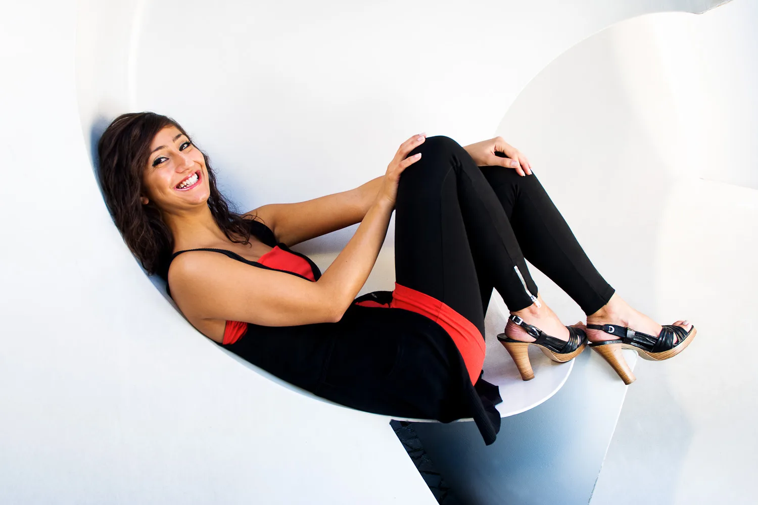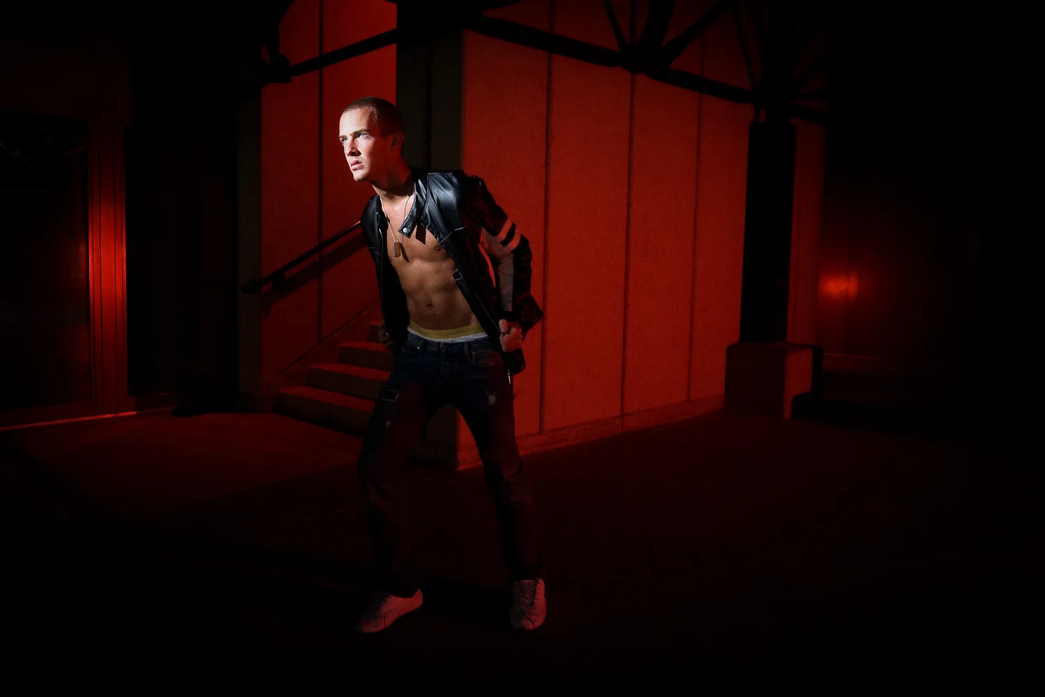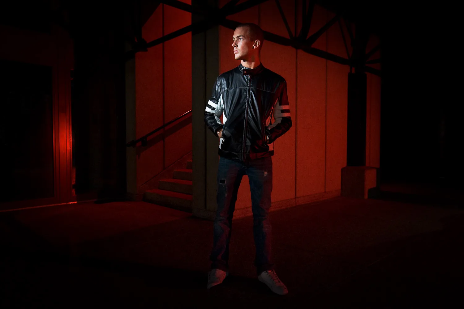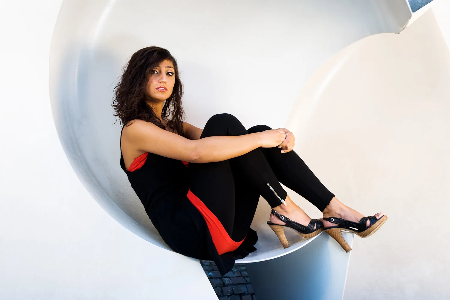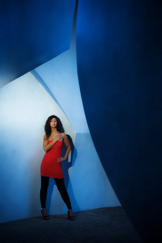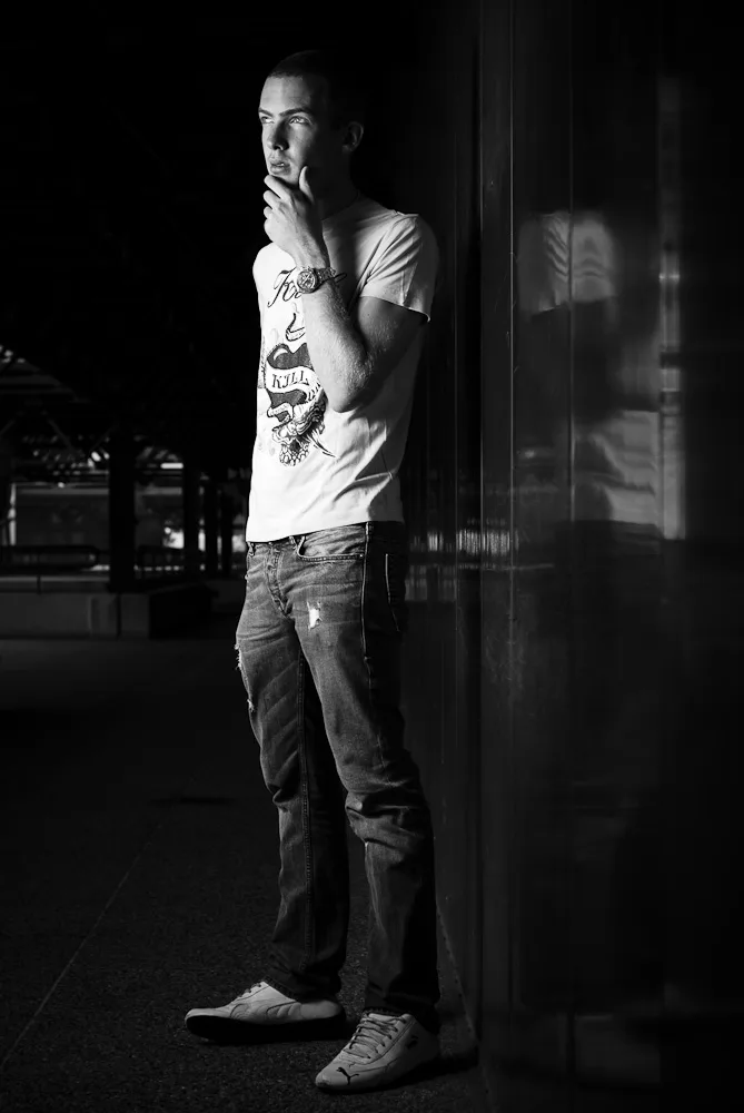 Along with five other experienced photographers, I worked with groups in the morning and afternoon, putting together lighting and location ideas. It was a refreshing change to work with volunteer male model Scott in the morning, as most of the volunteers I’ve photographed over the past couple of years have been women. In the afternoon, I’d hoped to work with one of the bands which were in attendance but it turned out that another group leader had already planned shots with a group in mind. The group I was working with therefore had the assistance of Hacer, who posed under our instruction amongst an unusual and large sculpture in the grounds of the campus. The biggest challenge of all for these shots was to remove a considerable amount of dirt from the sculpture using Photoshop during the editing process. :-)