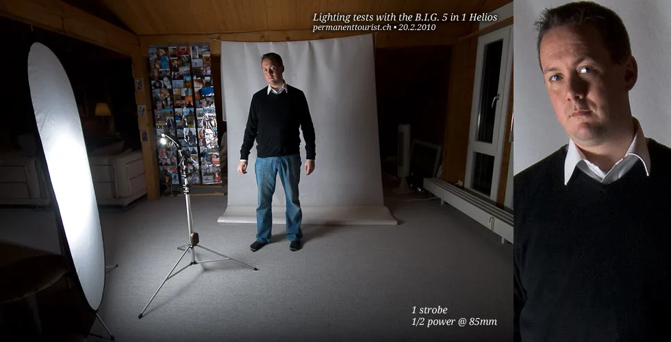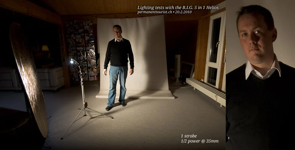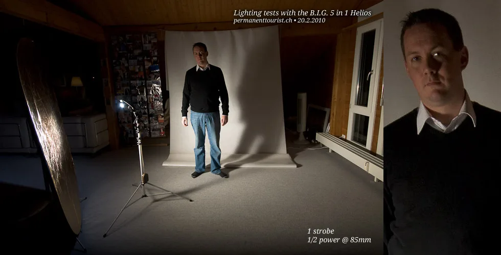 In all of the examples, using the Helios to provide an large single light source means that the surrounding area is also filled with light. To achieve a more directional soft light, you’d need an directional softbox, which are unfortunately a fairly expensive.